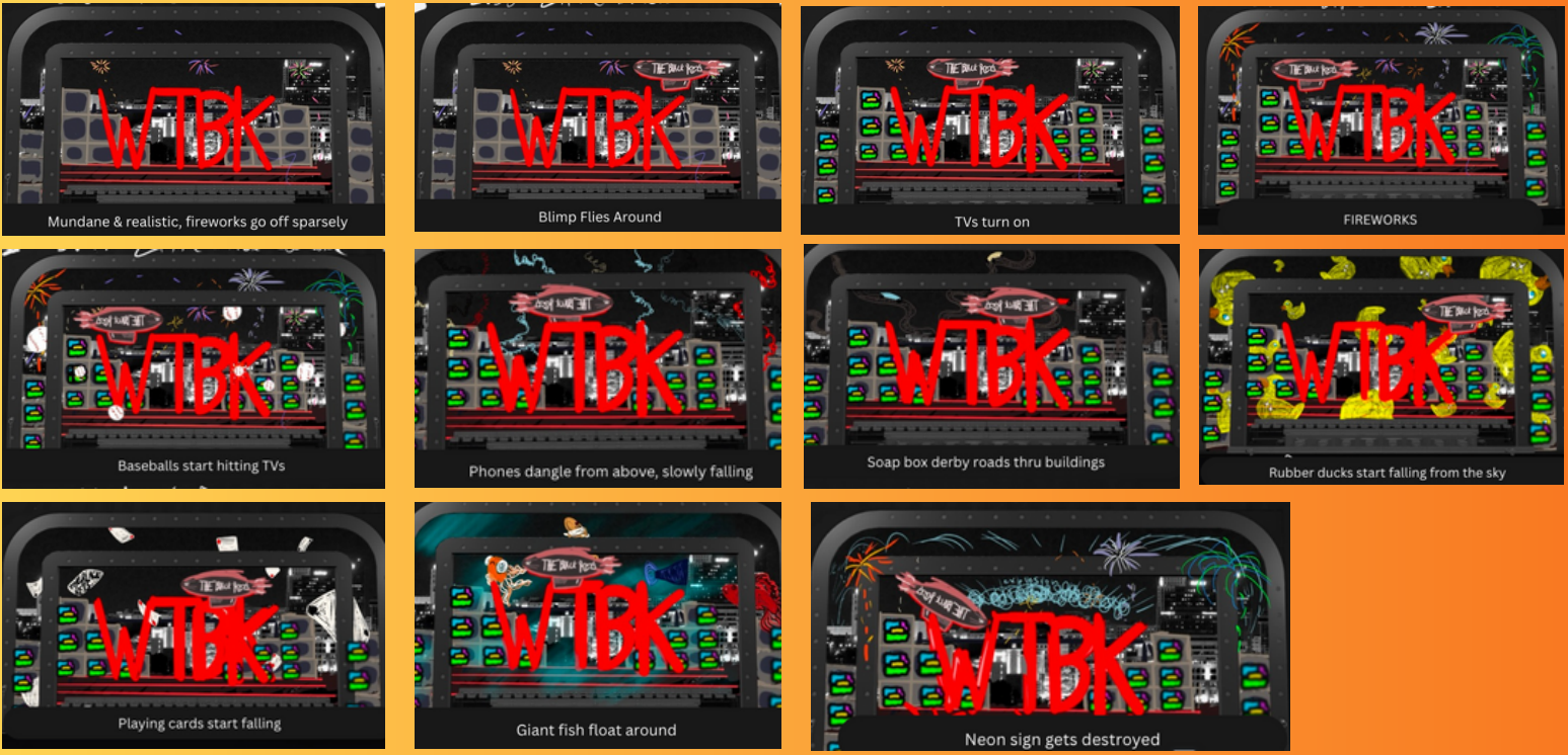 These boxcars were designed to give a vintage vibe to one of the end show designs. Within the design, the box cars were driving around the screen on streets above the 3D designed Unreal Engine city, which was made by Gus Kirkpatrick. He created a city skyline in Unreal and I was creating concept sketches for what sets were going to happen in the background of the black keys. These boxcars designs were put onto 3D models that Stephen Holland made.